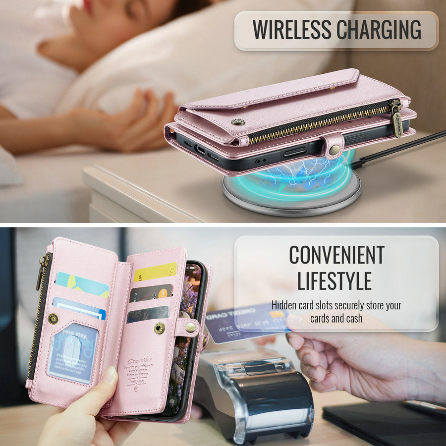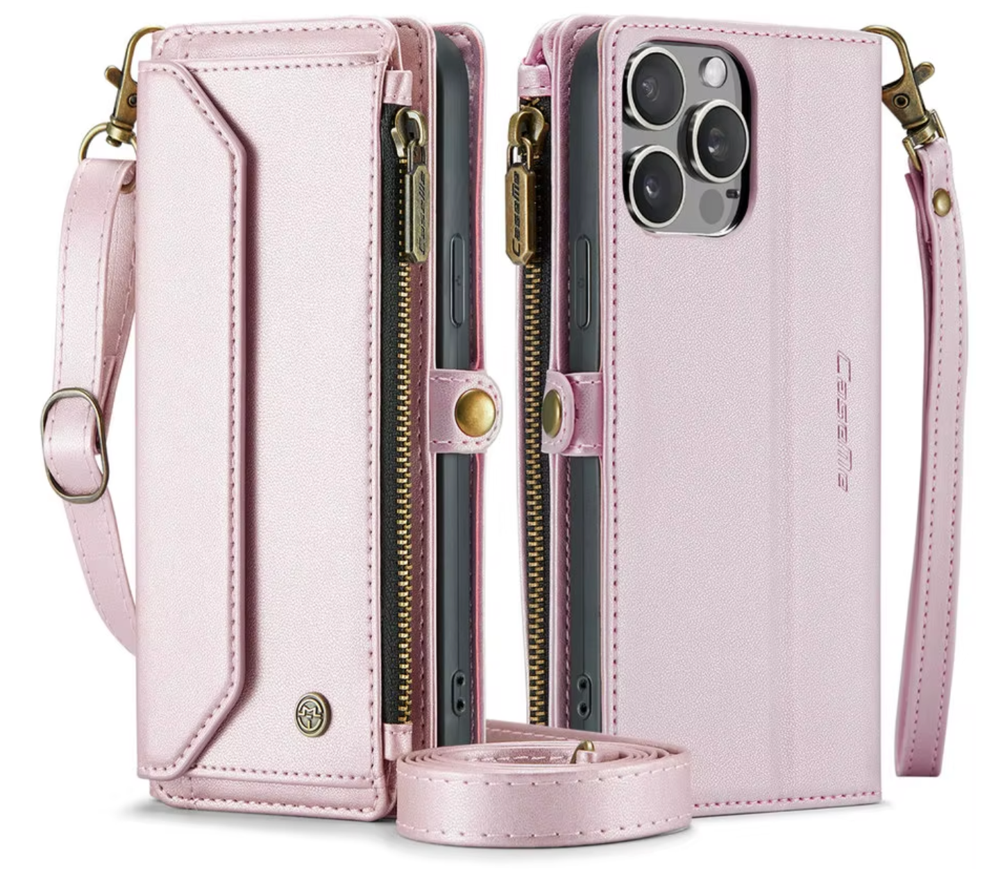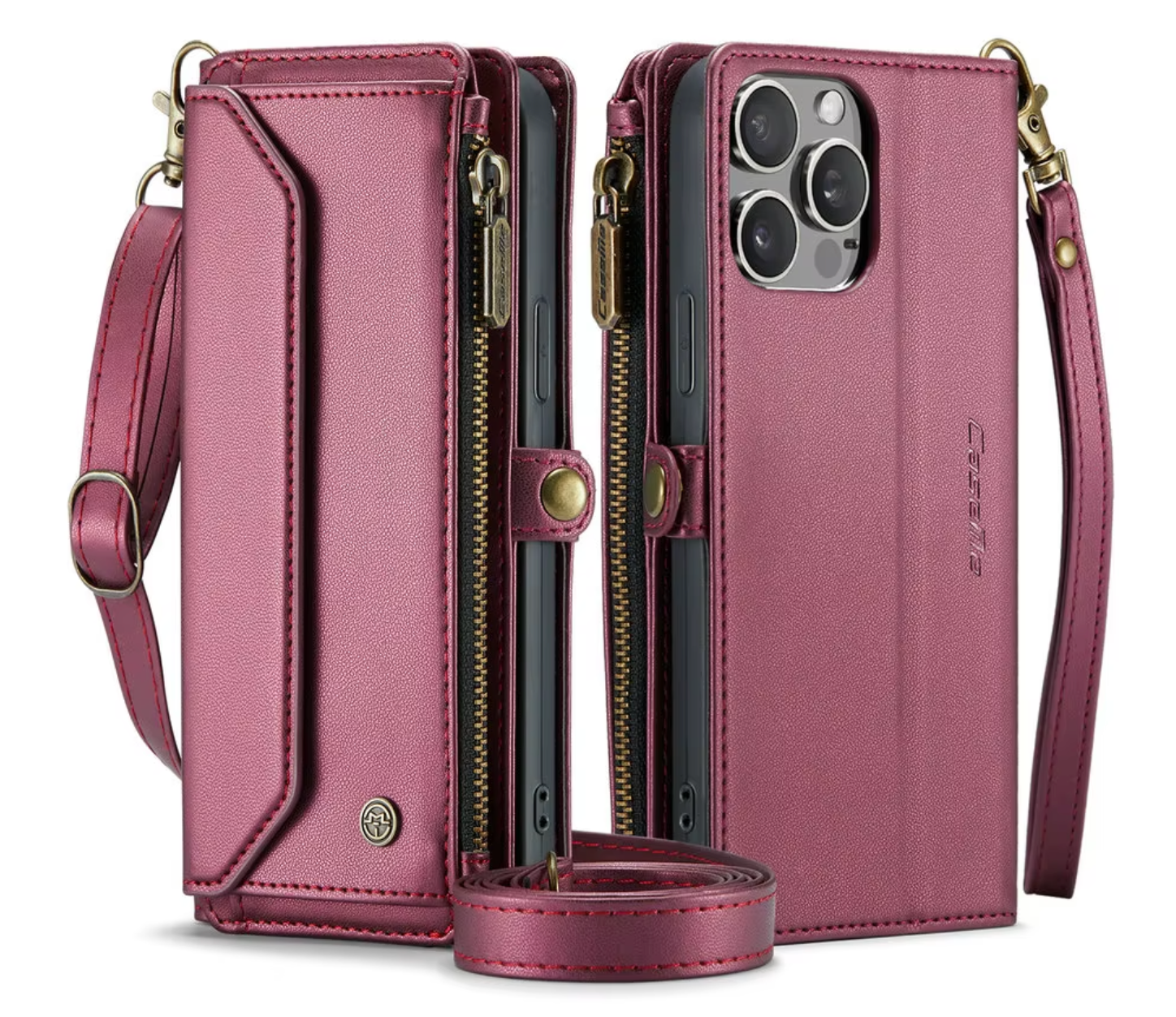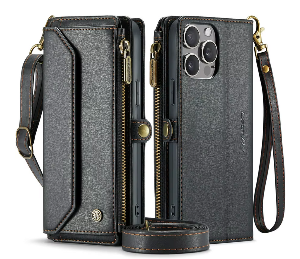 Cobertor CaseMe de cuero sintético para iPhone, diseñada como una elegante cartera 👜 tipo wallet, esta funda te permite llevar todo lo esencial en un solo lugar y además cuenta con la tecnología RFID, que protege los datos de tus tarjetas🔒💳🚫.
