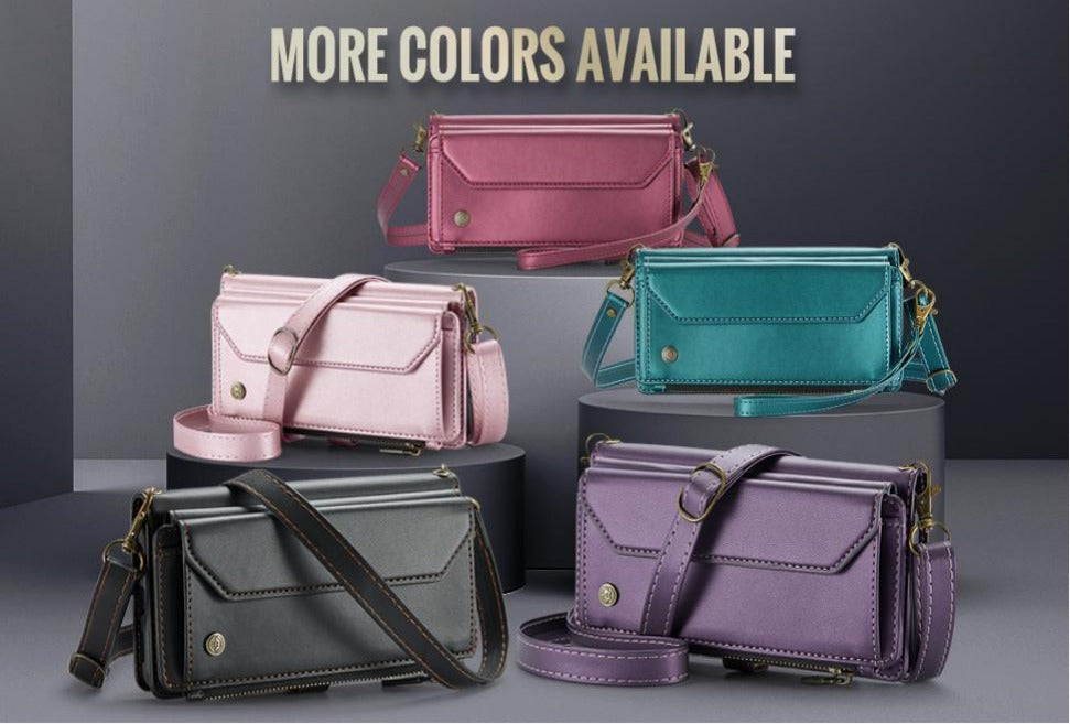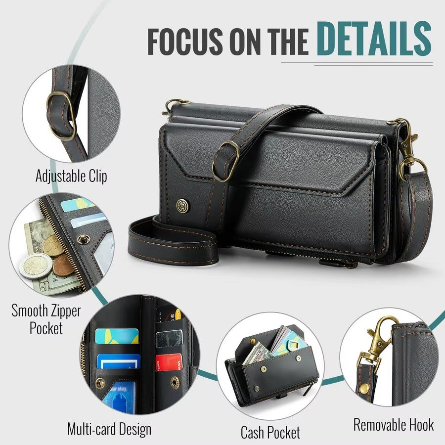 Diseño tipo cartera: practico y elegante, de material de cuerina premium, suave al tacto y resistente al uso diario.👜