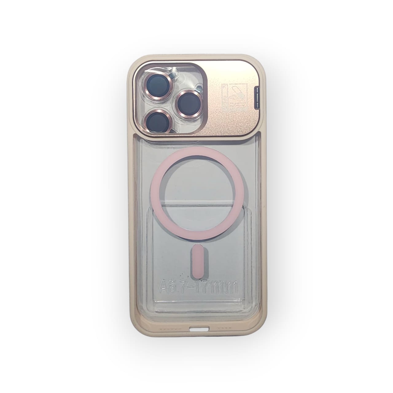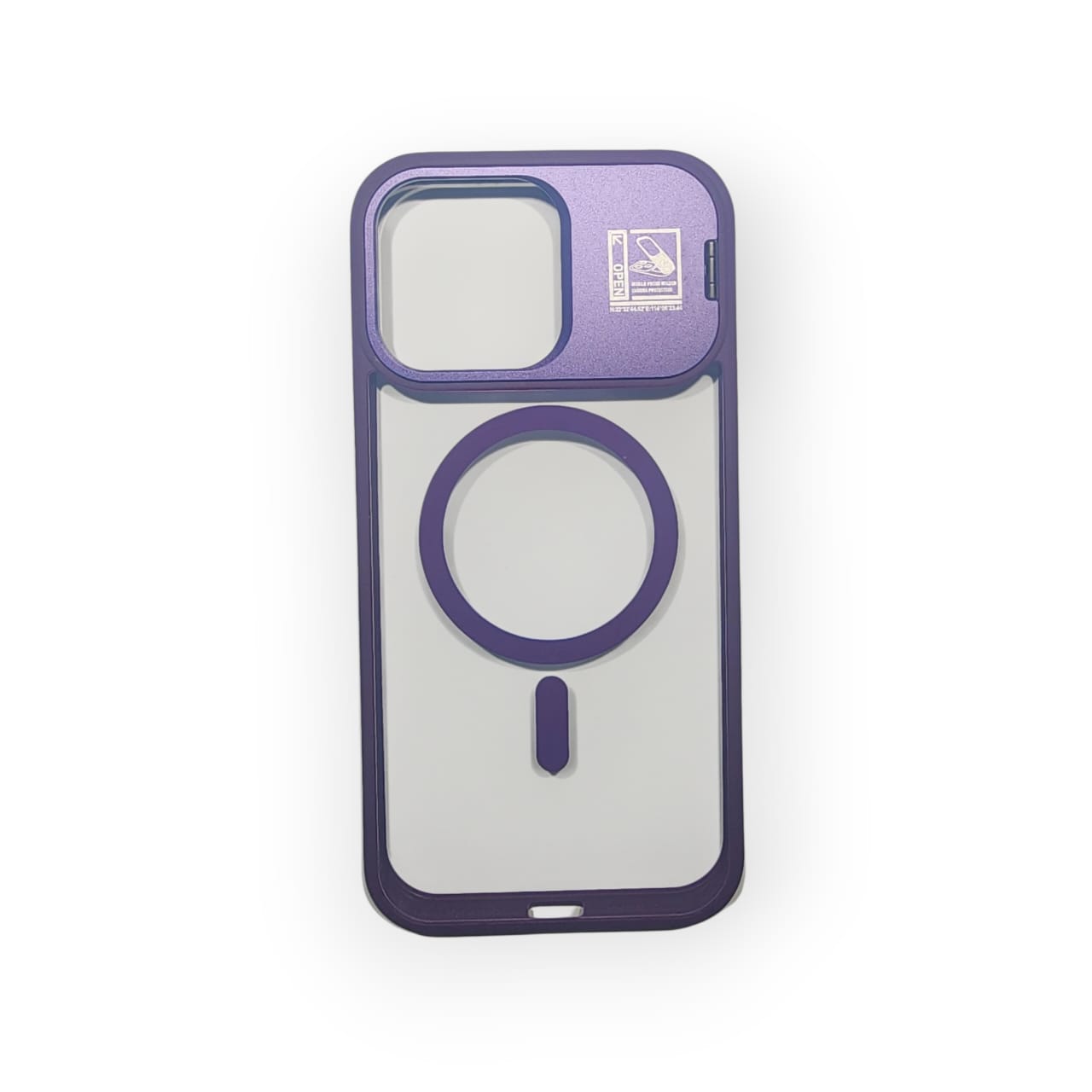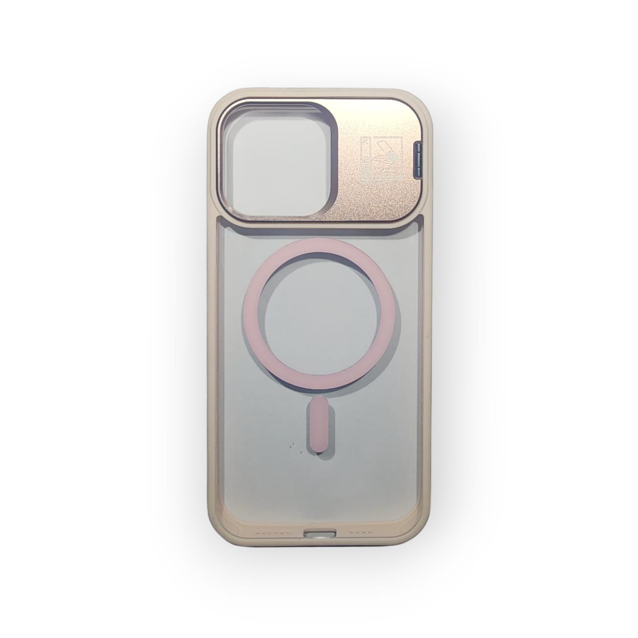 Case iPhone Magsafe orilla colores + stand metal completo de camara