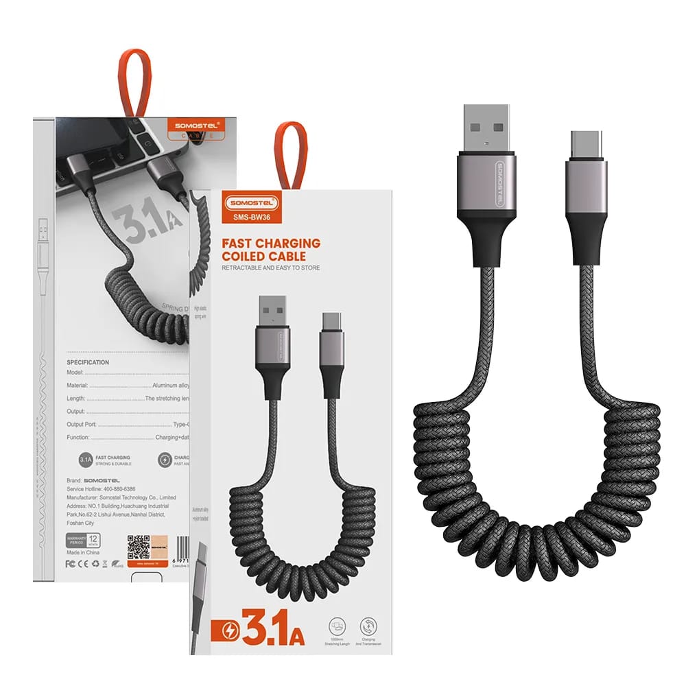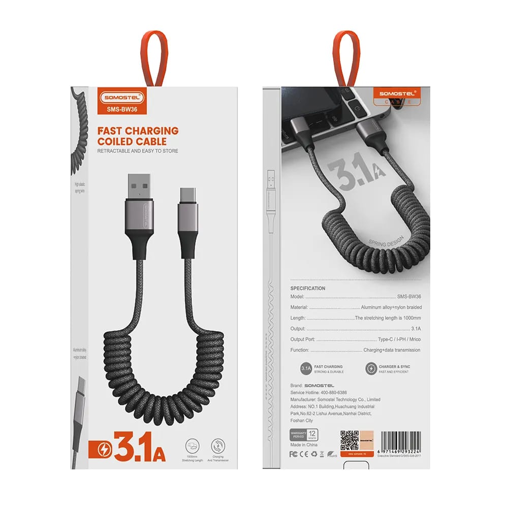 Disfruta de cargas rápidas y seguras con el cable Somostel BW-36.
